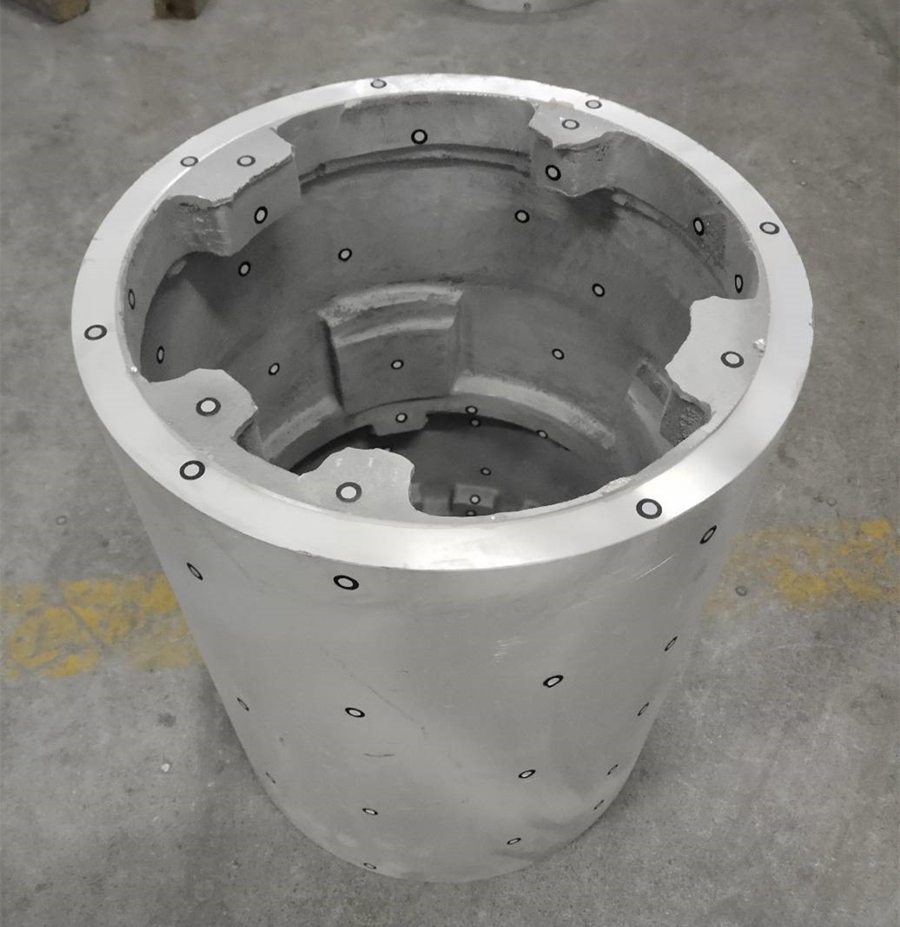 圖12:筒形件鑄件復合鑄型 按照模擬的低壓澆注工藝參數澆注了筒形件鑄件,見圖13,鑄件經X光檢測后沒有發現超標缺陷,符合HB7780-2005Ⅰ類鑄件要求。經過T6熱處理后抗拉強度為295MPa,伸長率為3.5%。