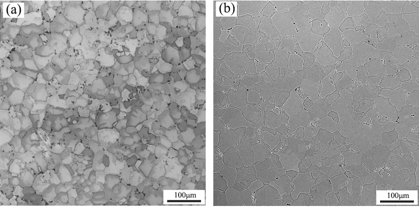 ![]() 原標題:流變擠壓鑄造Al-5Zn-2Mg-1Cu-0.2Sc合金組織與力學性能研究 摘要:采用流變擠壓鑄造技術制備了Al-5Zn-2Mg-1Cu-0.2Sc合金,通過拉伸試驗、SEM和TEM等方法研究了澆注溫度對半固態漿料、流變擠壓鑄造合金組織和力學性能的影響。結果表明,隨著澆注溫度的降低,半固態漿料和流變擠壓鑄造合金初生α-Al相形貌逐漸轉變為近球形,在晶界附近析出的第二相分布越來越均勻,平均晶粒尺寸減小,圓整度增加。當澆注溫度為700 ℃時,半固態漿料初生相尺寸最小,約為35 μm,平均形狀因子約為0.49,流變擠壓鑄造后合金平均晶粒尺寸約為43 μm。流變擠壓鑄造合金力學性能隨著澆注溫度的降低逐漸增加。合金經過470 ℃×10 h+500 ℃×2 h雙級固溶后,大部分第二相溶于基體。120 ℃×24 h時效處理后,合金的屈服強度達539 MPa,抗拉強度達612 MPa,伸長率達11%。 Al-Zn-Mg-Cu系(7xxx系)高強鋁合金具有比強度高、塑性和耐腐蝕性好、易于機械加工等特點,廣泛應用于航空航天、交通運輸、機電儀表等領域。7xxx系鋁合金是一類典型的變形鋁合金,在實際生產中通常采用擠壓、軋制和鍛造等塑性變形方法成形。由于合金元素含量高、凝固溫度范圍寬,鑄造過程中易出現熱裂、偏析和組織粗大等缺陷,難以通過傳統液態成形制備復雜結構零部件,這嚴重限制了該類高性能鋁合金的應用范圍。隨著我國新能源汽車的發展,對結構件輕量化、高性能、高可靠性的需求越來越迫切,采用7xxx系高強鋁合金“以鋁代鋼”制備底盤與動力系統等關鍵復雜結構件是實現汽車輕量化的重要途徑,開發7xxx系鋁合金“以鑄代鍛”的新型液態/半固態成形技術也越來越受到國內外的關注。 流變擠壓鑄造技術具有成形溫度低、凝固收縮小、組織致密度高、鑄造缺陷少等優勢,可制備形狀復雜、內部質量和尺寸精度要求高的金屬零件,該技術在7xxx系高強鋁合金上的應用有望解決其鑄造成形性差的難題,實現“以鑄代鍛”的目標。近年來,國內外對于7xxx系鋁合金的流變擠壓鑄造研究主要集中于熔體的細化與均勻化處理、半固態漿料的制備方法及工藝參數、合金強化機制、流變鑄造工藝與數值模擬等方面。目前,相關研究主要通過改變制漿方法、添加復合細化劑制備高熔體質量漿料,研究成形壓力、保壓時間等工藝參數對7xxx系鋁合金組織的影響,但流變成形7xxx系合金的力學性能普遍不如鍛造成形和觸變成形。另一方面,在7xxx系鋁合金中復合添加Mn、Ti、Cr、Sc、Zr等元素,雖然可以提高流變成形合金強度,但其塑性相對較低,限制了其工業化應用。 本研究從Sc微合金化、流變成形溫度控制和熱處理3方面出發,提高流變擠壓鑄造7xxx系合金的強韌性。采用滾筒機械攪拌裝置制備Al-5Zn-2Mg-1Cu-0.2Sc合金半固態漿料,研究澆注溫度對合金半固態漿料、流變擠壓鑄造和熱處理組織性能的影響,旨在為7xxx系鋁合金流變成形技術的開發與應用奠定理論和實踐基礎。 1、試驗材料與方法 將鋁銅、鋁鈧、鋁錳、鋁鉻、鋁鈦硼中間合金,純鋅錠、純鎂錠等加入井式電阻爐進行熔煉、精煉制備Al-5Zn-2Mg-1Cu-0.2Sc合金。通過立式四柱型油壓機(YC27-63 800KN)對合金進行流變擠壓鑄造,模具預熱溫度為250 ℃,壓力為120 MPa,保壓時間為30 s,澆注溫度為700~740 ℃。 采用機械攪拌設備制備半固態漿料,包括機械攪拌系統和超敏溫度測量系統,見圖1。機械攪拌系統可調節筒體轉速、預熱溫度和傾角,超敏測溫系統可以對流出桶外的漿料快速測溫。試驗參數如下:機械攪拌圓筒預熱溫度為250 ℃,轉速為60 r/min,傾角為30°,制漿澆注溫度為700~760 ℃,漿料通過銅模冷卻。