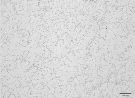 表1:鋁合金長臂件的熱處理規(guī)范。 1.2 試樣的制備及顯微組織觀察 斷口試樣從鋁合金長臂件最外端的厚壁較大部位截取。制備φ6mm圓棒拉伸試樣進行拉伸試驗后,選取力學性能較高的拉伸試樣斷口(試樣3)和較低的拉伸試樣斷口(試樣4)。試樣3的抗拉強度為324 MPa、伸長率為13.0%,試樣4的抗拉強度為298 MPa、伸長率為3.5%。 金相組織觀察用試樣1從試樣3的相鄰部位截取,試樣2從試樣4的相鄰部位截取。采用砂紙由粗到細磨至光亮后進行拋光,采用0.5%氫氟酸水溶液浸蝕,用酒精清洗吹干后,在ZEISS型金相顯微鏡下觀察其顯微組織及可能存在的氣孔、氧化雜物、疏松及縮孔等缺陷。 在Quanta250FEG型熱場掃描電鏡下觀察斷口試樣3、試樣4斷口的形貌。 2、試驗結果與分析 2.1 金相組織觀察