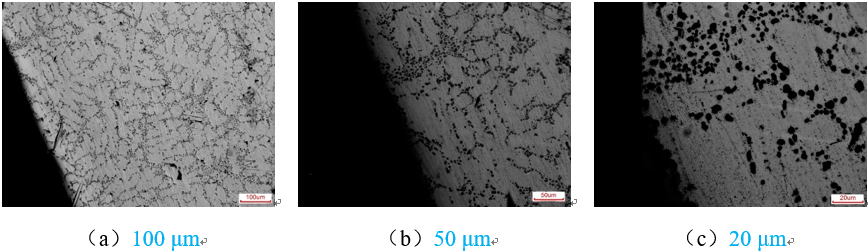 圖7:不同噴丸時間試樣金相組織(高倍) 3、結 論 (1)通過局部噴丸處理可以改善A356鑄造鋁合金鑄件表面的組織和力學性能。 (2)A356鑄造鋁合金經過表面噴丸處理之后,會在表層形成殘余壓應力,形成具有一定厚度的塑性變形層,該變形層的形成能夠提高表層的硬度和塑性,改善疲勞性能;另外通過局部噴丸還可以明顯地細化表層組織中的共晶Si晶粒,使其形貌由粗塊狀轉變為細小蠕蟲狀或顆粒狀組織,使合金表層組織更加均勻細小。 (3)通過噴丸處理在表層形成的壓應力層在經過加熱之后原來的殘余壓應力會消失,恢復至拉壓應力交替存在的狀態。因此噴丸后鑄件推薦在受熱溫度較低的環境下使用較為合適(建議零件長時間使用溫度小于100 ℃),這樣有利于保持鑄件局部的噴丸強化效果。 (4)通過噴丸處理形成的塑性變形層具有一定厚度,且從表層至心部強化效果逐漸弱化。隨著噴丸時間的增加,合金表層硬度呈現逐漸上升的趨勢,但到后期繼續延長噴丸時間,硬度增加趨勢不明顯,反而會對材料表面產生損傷,增大表層應力集中傾向。