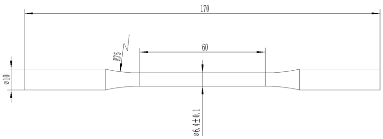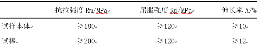 圖2:拉伸試棒尺寸示意圖 為了保證試棒和壓鑄件熱處理工藝的一致性,需要一起放在同一熱處理工裝上,在熱處理連續爐進行熱處理,使用萬能拉伸試驗機進行力學性能測試。力學性能要求見表1。