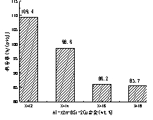 圖4 Al-xZn-8Si-2Cu合金的斷口形貌 2.3 Zn含量對熱導率的影響 圖5為熱導率隨Zn含量的變化規律??梢钥闯?,隨著Zn含量的增加,合金的熱導率呈下降趨勢。由109.4 W/(m·K)降低到85.6 W/(m·K),降低了21.8%。金屬材料熱傳導過程的實質是自由電子的熱傳導和晶格振動產生的熱量。根據金屬材料的晶體特征,金屬材料的熱傳導方式以自由電子的熱傳導為主,因此金屬的熱導率和電導率存在一定的關系,即Wiedemann-Franz定律。