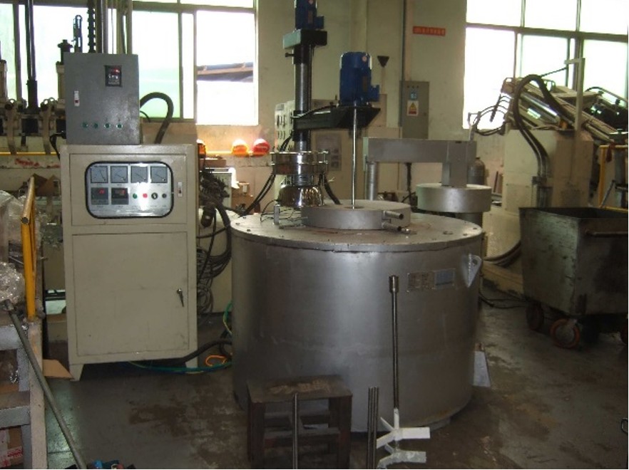 圖1 A356-B4C復合材料壓鑄成形設備 基于流體力學理論和DPM模型,構(gòu)建PAMCs壓鑄充型過程的多相流數(shù)值模擬模型。在模型中,A356鋁液作為連續(xù)相而B4C顆粒作為分散相處理,描述顆粒運動方程如下: