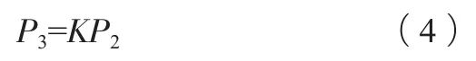 式中:μ2 為充型的阻力系數,在充型階段由于型腔較為復雜,所以升液阻力要大一點,所以本文取1.5;h2 為型腔高度,為0.195 mm。所以充型壓力P2 為11 020 Pa,根據2.2.1節充型時間為9.5 s。 增壓階段主要為充型階段結束后,需要向液面繼續增大壓力,使型腔內液體在壓力作用下繼續補縮和結晶,但是壓力不能過大,增壓壓力為:
