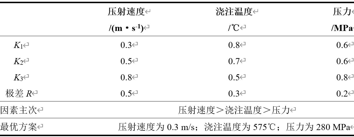 表3 Al-Si-Mg鋁合金半固態構件正交試驗方案與結果