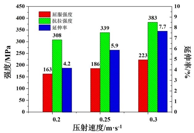 圖5 壓射速度對Al-Si-Mg鋁合金半固態流變壓鑄件力學性能的影響