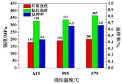 圖7 澆注溫度對Al-Si-Mg鋁合金半固態流變壓鑄件力學性能的影響