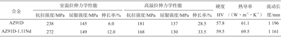 圖6 壓鑄態AZ91D與AZ91D-1.11Nd合金的室溫和高溫拉伸工程應力-應變曲線