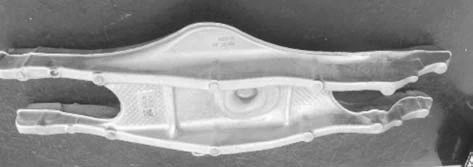 表2 產(chǎn)品力學(xué)性能 力學(xué)性能可以達到:抗拉強度>310 MPa,屈服強度>240 MPa,伸長率大于8%,硬度達到HB100。與本公司較為成熟的轉(zhuǎn)向節(jié)保持相近的力學(xué)性能,滿足客戶要求。 4、結(jié)束語 后下擺臂采用差壓鑄造工藝具有很好的工藝可行性,可以在綜合成本與低壓鑄造接近的情況下將產(chǎn)品抗拉強度提升到310 MPa,屈服強度提升到240 MPa,成本上也較擠壓與鍛造有一定優(yōu)勢,更加適合目前后下擺臂產(chǎn)品主要應(yīng)用的小批量高價格的乘用車使用。差壓鑄造特有的壓力下結(jié)晶以及更大的補縮壓差可以提高產(chǎn)品的凝固速度,達到更快的節(jié)拍。自行設(shè)計的控制臂可以根據(jù)差壓鑄造的特點進行強化與減重,得到更輕量化的產(chǎn)品結(jié)構(gòu),未來差壓鑄造在鋁合金各類控制臂上的應(yīng)用會越來越廣泛。
