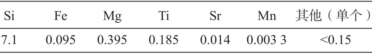 圖12 X光圖片 產(chǎn)品本體化學(xué)成分如表1,為保證較高的力學(xué)性能,本企業(yè)采用A356.2的成分要求,并將鐵含量控制0.1%以下。產(chǎn)品力學(xué)性能數(shù)據(jù)經(jīng)過本體取樣測量見表2。