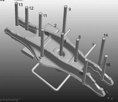 ![]() 原標題:差壓鑄造在鋁合金后下擺臂的應(yīng)用 摘 要:控制臂是汽車底盤安全件,而后下擺臂為控制臂的一種。目前,鋁合金后下擺臂主要為鍛造、低壓鑄造、擠壓鑄造,但由于鍛造、擠壓鑄造成本較高,主機廠選擇的較少,低壓鑄造力學(xué)性能偏低。為了滿足車輛輕量化需求,利用差壓鑄造工藝對產(chǎn)品進行設(shè)計、CAE分析、鑄造模擬分析,最終獲得差壓鑄造下的后下擺臂產(chǎn)品,產(chǎn)品屈服強度240 MPa以上,抗拉強度310 MPa以上,伸長率平均10%,獲得滿足客戶要求的產(chǎn)品,并降低了制造成本。 前 言:麥弗遜獨立懸掛通常由減震器、彈簧、下擺臂三部分構(gòu)成,下擺臂與兩橫臂相連,當車在凹凸不平的路面行駛時,保持車輛的穩(wěn)定,后下擺臂的材料為A356.2,結(jié)構(gòu)為兩側(cè)雙叉臂,中間設(shè)計彈簧承載面。后下擺臂承受轉(zhuǎn)向節(jié)傳遞的作用力以及車身彈簧的壓力,需要具有足夠的強度與剛度。產(chǎn)品為汽車底盤的安全件,出現(xiàn)失效時會引起車輛轉(zhuǎn)向失控,造成乘客的傷亡。 傳統(tǒng)的方式為鍛造成形工藝、低壓鑄造工藝或者擠壓鑄造工藝,但鍛造設(shè)備、擠壓設(shè)備投資大,工藝難度大,而同樣的結(jié)構(gòu)低壓鑄造雖然成本低,但同條件下力學(xué)性能較差壓鑄造低。 同樣使用T6熱處理工藝,本企業(yè)使用低壓鑄造設(shè)備獲得的力學(xué)性能為:抗拉強度不足270 MPa,屈服強度不足210 MPa,伸長率平均10%;而差壓鑄造設(shè)備可以將力學(xué)性能提高到:抗拉強度高于310 MPa,屈服強度高于240 MPa,伸長率10%,強度數(shù)值可以與擠壓鑄造力學(xué)性能媲美。 1、技術(shù)指標要求 1.1 力學(xué)性能要求及檢驗標準 后下擺臂的結(jié)構(gòu)見圖1。產(chǎn)品材料為A356.2,力學(xué)性能要求為:抗拉強度≥290 MPa,屈服強度≥220 MPa,伸長率大于8%,硬度大于HB85,熱處理按照CQI-9 T6標準執(zhí)行。