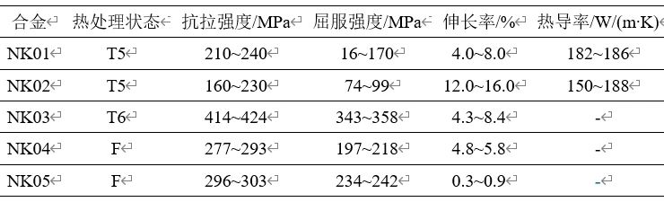 (a)液相分數-時間曲線,(b)液相含量-焓變曲線 基于上述兩個準則,采用材料熱力學計算方法分析了Si、Cu、Mg、Zn、Fe、Mn等元素含量對合金SEED流變壓鑄成形工藝窗口的影響規律,并針對不同應用場景的具體應用需求,設計了多款適用于高固相流變壓鑄成形的高性能鋁合金,部分材料的性能見表3。