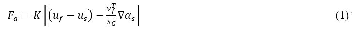 式中, 虛擬質量力Fvm也稱附加重力,是當顆粒做變速運動時,帶動周圍流體速度發生變化,除了顆粒變速運動消耗流體速度改變需要的功等同于對顆粒施加了一個“虛擬質量”,其數值等于被它排除的流體質量的一半。對球形顆粒與流體做相對變速運動時,虛擬質量力Fvm可以定量計算為: