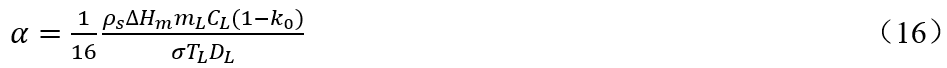 式中,α是一個材料特征參數決定的量,見式(16),CL是合金熔體的溶質含量。