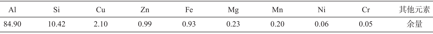表1 壓鑄鋁硅合金的化學(xué)成分 wB/%