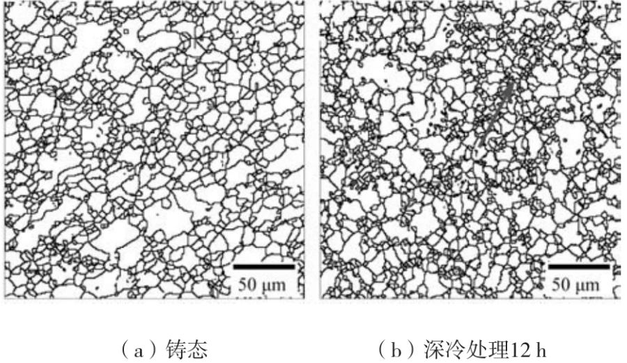圖8 鑄態(tài)與深冷12 h后EBSD晶粒尺寸示意圖
