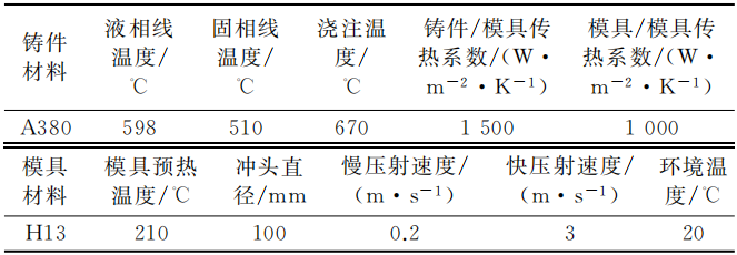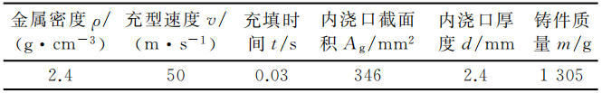 表1 壓鑄模主要設計參數 圖2 凸輪軸蓋鑄件澆注系統設計方案