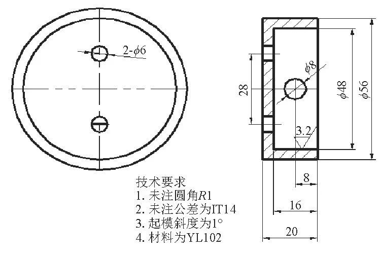 ![]() 原標(biāo)題:臥式冷室壓鑄機(jī)用殼體壓鑄模設(shè)計(jì) 壓鑄因效率高、材料利用率高、成形精度高等優(yōu)點(diǎn),在汽車、3C產(chǎn)品、五金零件等方面廣泛應(yīng)用。針對具體壓鑄件需要設(shè)計(jì)相應(yīng)的壓鑄模,殼體需要采用側(cè)澆口壓鑄模成形,而側(cè)澆口壓鑄模的設(shè)計(jì)和制造是確保鋁合金壓鑄件品質(zhì)的關(guān)鍵。以殼體鋁合金件為例,介紹鋁合金臥式冷室壓鑄機(jī)用壓鑄模的設(shè)計(jì)。 對某殼體鋁合金壓鑄件進(jìn)行了工藝分析,詳細(xì)介紹了臥式冷室壓鑄機(jī)用壓鑄模的結(jié)構(gòu)設(shè)計(jì),主要包括分型面選擇、澆注系統(tǒng)設(shè)計(jì)、側(cè)抽芯設(shè)計(jì)和脫模機(jī)構(gòu)設(shè)計(jì),闡述了該壓鑄模的工作原理和結(jié)構(gòu)特點(diǎn),為臥式冷室壓鑄機(jī)用壓鑄模結(jié)構(gòu)設(shè)計(jì)提供參考。 圖文結(jié)果 殼體結(jié)構(gòu)見圖1和圖2,該鑄件要求強(qiáng)度高,質(zhì)量輕,且在100℃以上高溫高濕環(huán)境下工作,因此選用YL102鋁合金,其熔點(diǎn)為650℃,由于Si含量較高,熔煉爐選用金屬坩堝。該鑄件上有2個(gè)φ6mm通孔及φ8mm盲孔,外形為φ56mm圓柱面,2個(gè)φ6mm通孔有中心距280-0.2mm要求,鑄件尺寸精度要求不高。該鑄件成形性能較好,要求表面光滑,內(nèi)部不得有裂紋、冷隔、氣孔等鑄造缺陷,內(nèi)、外表面的起模斜度取1°,鑄件壁厚為4mm,內(nèi)外圓柱面過渡處設(shè)置圓角,半徑取1mm;壓鑄工藝參數(shù):壓射比壓為65MPa,充型速度為42m/s,澆注溫度為630℃,模具預(yù)熱溫度為160℃,充填時(shí)間為0.1s,采用氟化鈉水作涂料。根據(jù)投影面積法計(jì)算合模力,選用J1110A型臥式冷室壓鑄機(jī)壓鑄,該壓鑄機(jī)壓室內(nèi)徑為φ40mm,外徑為φ90mm,壓射行程為0~120mm。