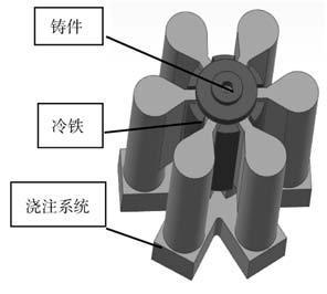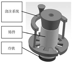 圖1 鑄件示意圖 1.1 澆注系統(tǒng)設(shè)計 采用基于FEM的Procast 2018軟件進行理論模擬,設(shè)計低壓鑄造工藝、重力澆注工藝對應(yīng)的最理想澆注方案,并開展對應(yīng)工藝的產(chǎn)品試制。