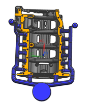 1. 模具設(shè)計(jì)方案 根據(jù)缸體群架的結(jié)構(gòu)特點(diǎn),為保證缸體群架周邊功能區(qū)局部壁厚較厚的部位的內(nèi)部品質(zhì),鑄件采用U型澆注系統(tǒng),能夠快速填充鑄件并對(duì)兩側(cè)局部厚大處實(shí)施有效的補(bǔ)縮。缸體群架U型澆道見(jiàn)圖2。