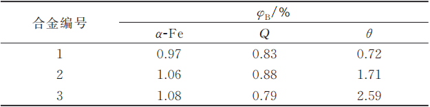 表2 高真空壓鑄Al-10Si-0.5Mn-0.4Mg-xCu合金鑄態金屬間化合物面積分數統計結果