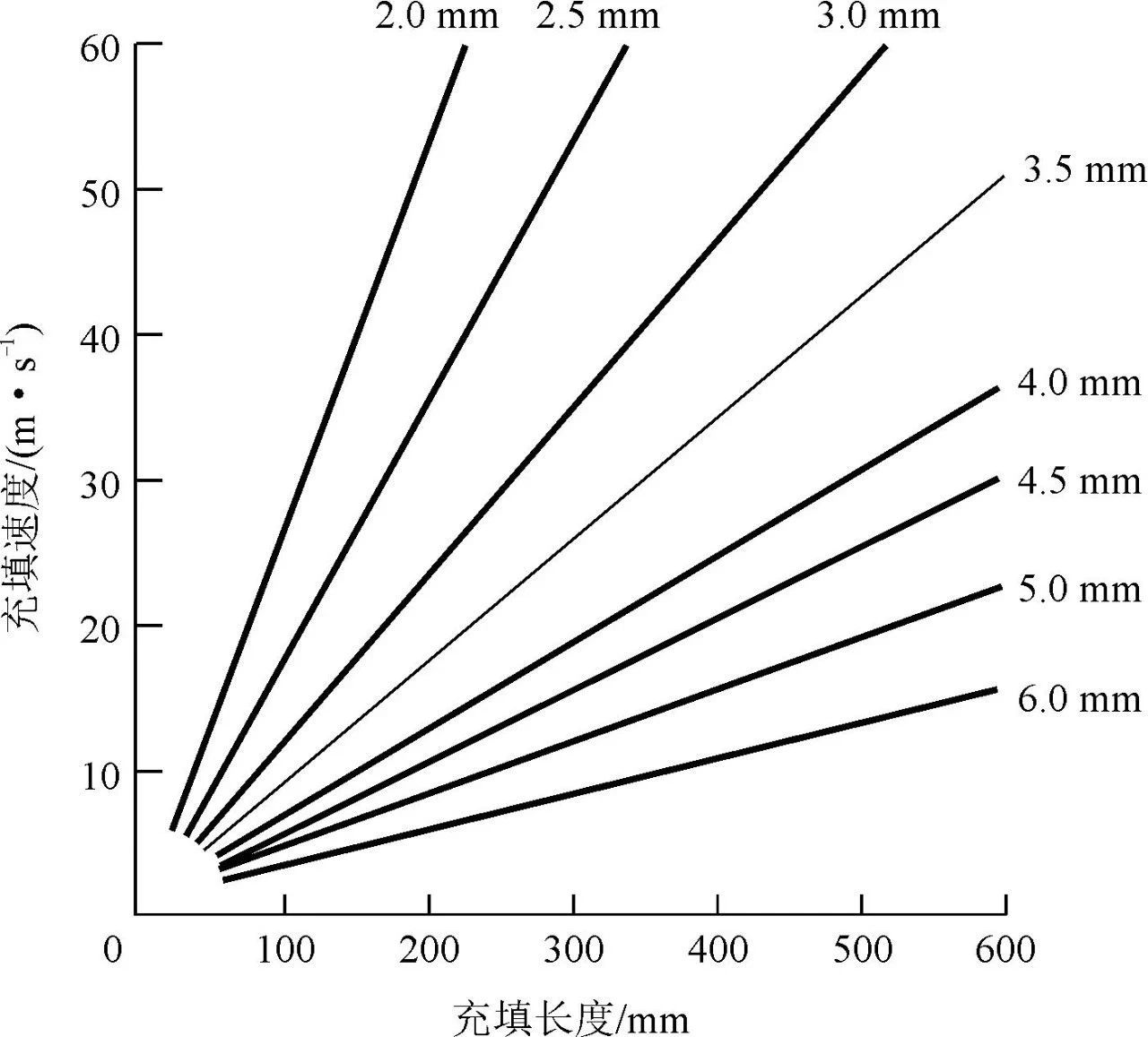 圖3 不同壁厚鑄件充填速度與充填長度的關系