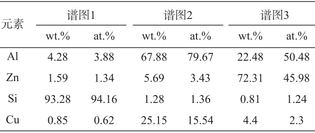 表3 對應(yīng)EDS能譜