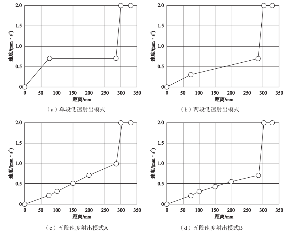 圖6 五段速度射出模式A壓射過程的模擬結(jié)果