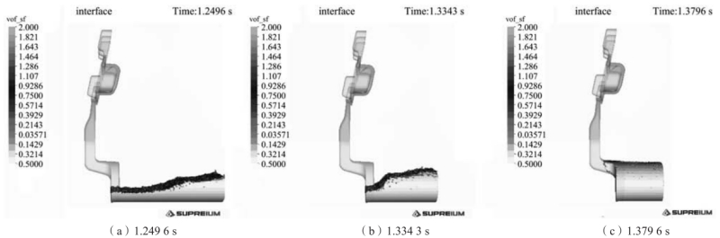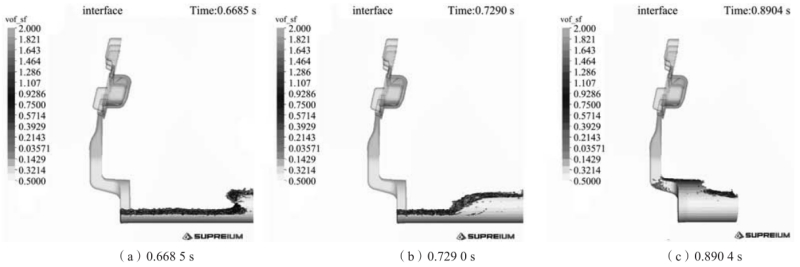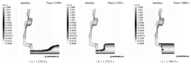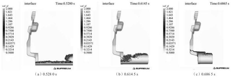 圖5 兩段低速射出模式壓射過程的模擬結(jié)果
