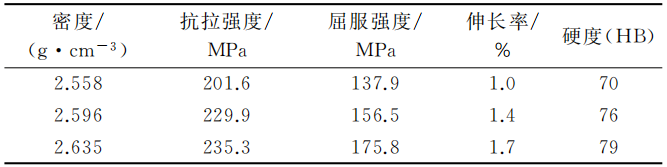圖3 不同密度鋁合金試樣的比較(g·cm-3)