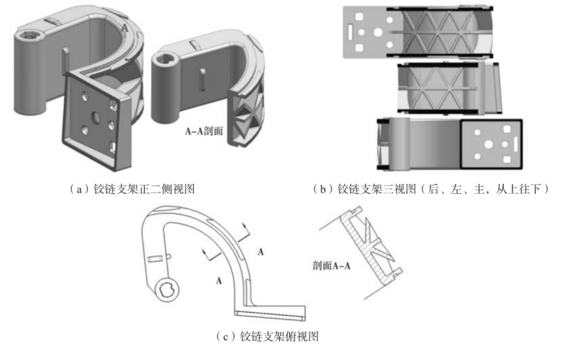 ![]() 原標(biāo)題:鉸鏈支架壓鑄工藝設(shè)計(jì)和優(yōu)化 摘要 根據(jù)鉸鏈支架結(jié)構(gòu)進(jìn)行壓鑄工藝設(shè)計(jì),針對(duì)其結(jié)構(gòu)特點(diǎn)設(shè)計(jì)了兩種壓鑄工藝,利用Anycasting分析軟件對(duì)兩種工藝進(jìn)行數(shù)值模擬,對(duì)比分析兩種工藝方案鑄件缺陷產(chǎn)生的位置及原因,結(jié)合實(shí)際生產(chǎn)條件,選擇了一種較優(yōu)的壓鑄工藝進(jìn)行優(yōu)化,優(yōu)化內(nèi)澆道和溢流槽的數(shù)量和位置,改空冷和水冷。經(jīng)模擬分析及試模證實(shí)優(yōu)化措施有效,滿足生產(chǎn)質(zhì)量要求。 當(dāng)前制造業(yè)的發(fā)展方向?yàn)榈臀廴尽⑤p量化和高性能,傳統(tǒng)制造工藝無(wú)法滿足時(shí)代的發(fā)展。壓力鑄造作為特種鑄造中高精密制造技術(shù)的代表,具有尺寸精度高、加工余量小、零件強(qiáng)度高的優(yōu)點(diǎn)。同類型壓鑄材料中壓鑄鋁合金更具良好的熱塑性、較小的線收縮率、良好的高溫?zé)釓?qiáng)度和物化性能,是壓鑄工藝材料的首選。成熟的壓鑄工藝有著生產(chǎn)高效、成品率高的特點(diǎn)。但新鑄件工藝周期漫長(zhǎng),依賴設(shè)計(jì)人員的經(jīng)驗(yàn)和實(shí)際生產(chǎn)反饋,其中因工藝優(yōu)化迭代帶來(lái)的重復(fù)試模,導(dǎo)致工藝成本的提高和生產(chǎn)周期的延長(zhǎng),極大限制了壓鑄領(lǐng)域的發(fā)展。因此將CAE仿真模擬引入壓鑄領(lǐng)域,通過(guò)對(duì)金屬液充填凝固過(guò)程的模擬,分析優(yōu)化澆注系統(tǒng)結(jié)構(gòu),縮短設(shè)計(jì)周期。 本論文研究的鉸鏈支架,結(jié)構(gòu)復(fù)雜且為免加工件,對(duì)尺寸精度、后續(xù)機(jī)加工區(qū)域有嚴(yán)格的要求,因此采用壓鑄工藝進(jìn)行生產(chǎn)。通過(guò)對(duì)鉸鏈支架結(jié)構(gòu)、表面精度要求進(jìn)行分析,設(shè)計(jì)了兩種壓鑄工藝,并使用Anycasting軟件進(jìn)行數(shù)值模擬,對(duì)兩種方案進(jìn)行分析,預(yù)測(cè)可能出現(xiàn)的氣孔、縮松、縮孔、冷隔等缺陷的位置及原因,選擇較優(yōu)的方案進(jìn)行工藝改進(jìn)優(yōu)化,最終進(jìn)行生產(chǎn)驗(yàn)證,為該類零件生產(chǎn)提供參考。 1 零件總體分析 鉸鏈支架見圖1,材料為YL113鋁合金,YL113鋁合金化學(xué)成分如表1所示。鑄件平均壁厚2.32 mm,最大壁厚5.63 mm,外形尺寸為116 mm×82 mm×43 mm,重131.64 g。如圖1所示,鑄件結(jié)構(gòu)復(fù)雜,由弧面和斜平直面將套筒區(qū)和多通孔板件區(qū)連接,截面半工字呈內(nèi)扣狀,外壁布置大量交叉薄壁筋板,要求鑄件免加工,深色區(qū)域?yàn)榇蚰ッ妫ッ蹋湛s率為0.5%,無(wú)縮孔、縮松等鑄造缺陷。