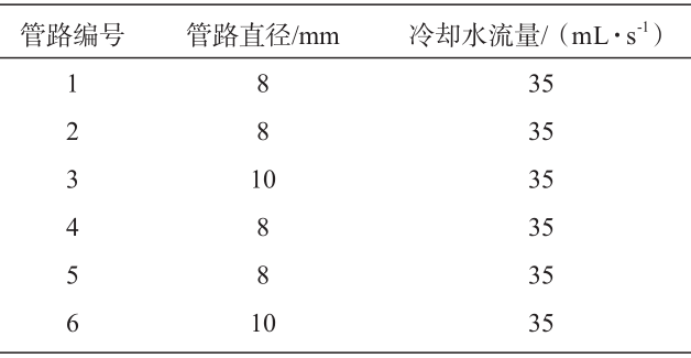 圖9 改進(jìn)后的澆排系統(tǒng)設(shè)計(jì) 在凝固過(guò)程中,針對(duì)套筒連接區(qū)和通孔板件上下表面壁厚處出現(xiàn)孤立液相區(qū)的問(wèn)題,在其上方布置溫度為20°的水路管道,從而優(yōu)化鑄件的凝固順序。此外增設(shè)的內(nèi)澆道能有效延緩內(nèi)壁的凝固,確保內(nèi)壁完全凝固滯后于壁厚區(qū),以及對(duì)壁厚區(qū)進(jìn)行補(bǔ)縮。冷卻水路布置如圖10所示,冷卻工藝參數(shù)如表3所示。