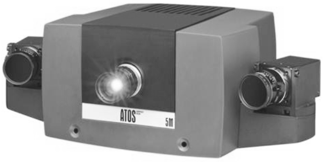 圖1 ATOS Compact Scan 5M三維光學掃描儀 ATOS掃描儀利用光學三角形原理,采用兩個電荷耦合器件(CCD)攝像頭檢測物體形狀,并合成三維數據。它還支持利用探針檢測,對鏡面等高反射表面及深孔等用CCD攝像頭難以拍攝的物體,由探針實施輔助檢測。該掃描儀在精度、銳化度和完整性方面均可達到基準質量水平,其技術規格見表1。