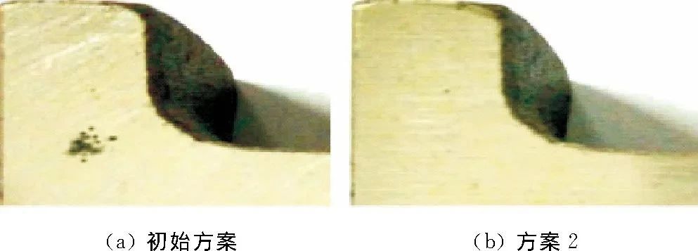 圖10 初始方案和優化方案2試生產鑄件A處剖析 作者