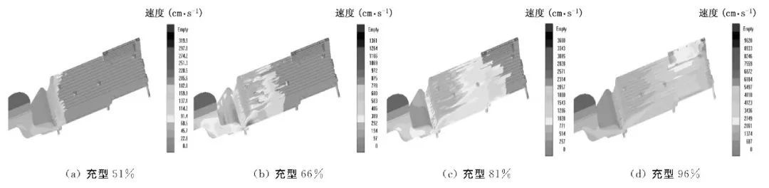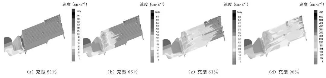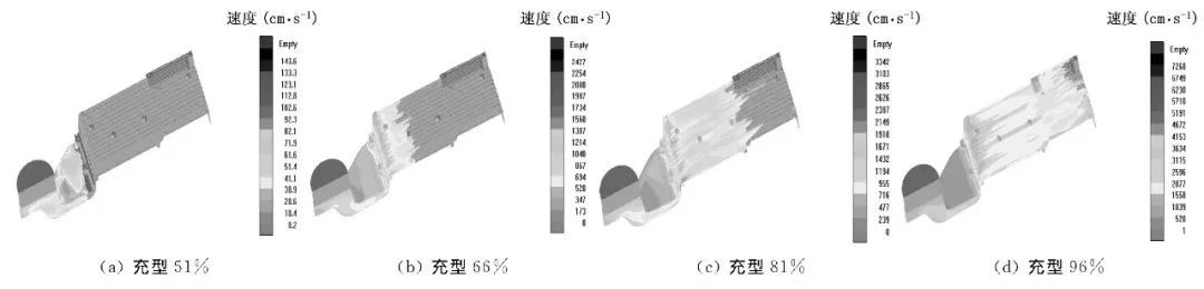 圖3 半固態壓鑄充型模擬結果(方案2)