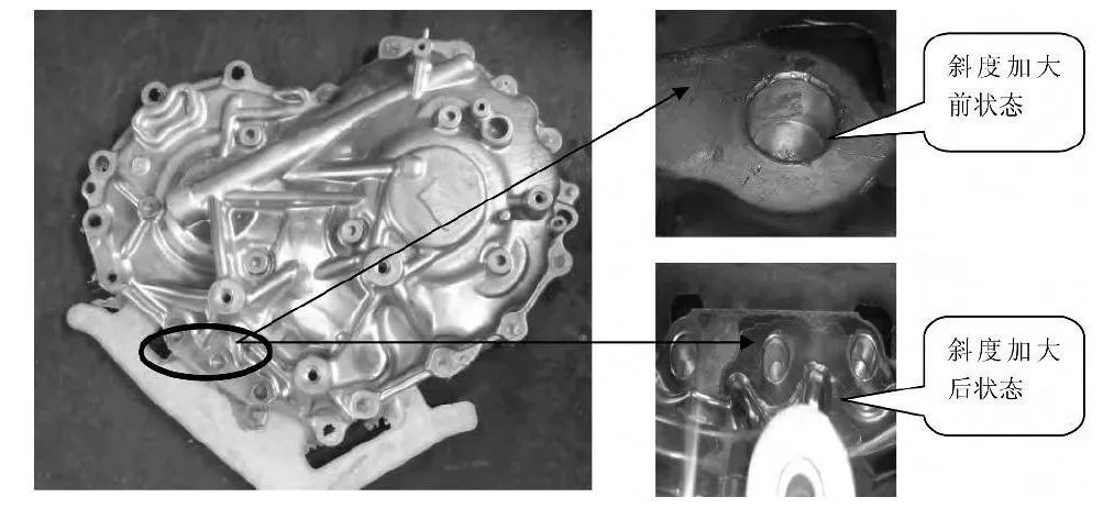 廣東鴻圖科技股份有限公司工程師安肇勇等在《特種鑄造及有色合金》期刊上發表了題為“變速箱側蓋壓鑄成形的缺陷分析及對策”的文章,作者針對某變速箱側蓋鋁合金的壓鑄成形,應用數值模擬方法,分析鋁合金液體流動充型狀態與鑄件缺陷的分布,確定了鑄件的澆注系統與排氣系統,大大減少了模具的開發周期。同時在試模與試生產階段,從澆注、工藝、模具等方面分析了不同缺陷產生的原因,提出了改善措施。結果表明,合理的澆注、排氣系統與合理的冷卻是獲得高品質壓鑄件的關鍵。 圖文結果 本課題開發的汽車變速箱側蓋壓鑄件見圖1。該鑄件輪廓尺寸為425 mm×355 mm×71 mm,質量為3.3kg,平均壁厚為2.3mm,投影面積為112280mm2鑄件材質為Al-11Si-2Cu,有多處厚壁熱節部位,易產生縮孔缺陷;產品毛坯平面度要求為0.6 mm,外觀無明顯的壓痕;產品加工后密封面氣縮孔為Φ0.5~1.0mm的允許1個,小于Φ0.5mm的允許2個,軸承孔機加工后不允許有氣縮孔外露;內腔試漏壓力為0.05MPa,泄漏量≤8mL/min,油道試漏壓力為0.3 MPa,泄漏量≤8mL/min;硬度(HB)≥58。該鑄件在13500kN的壓鑄機上生產。