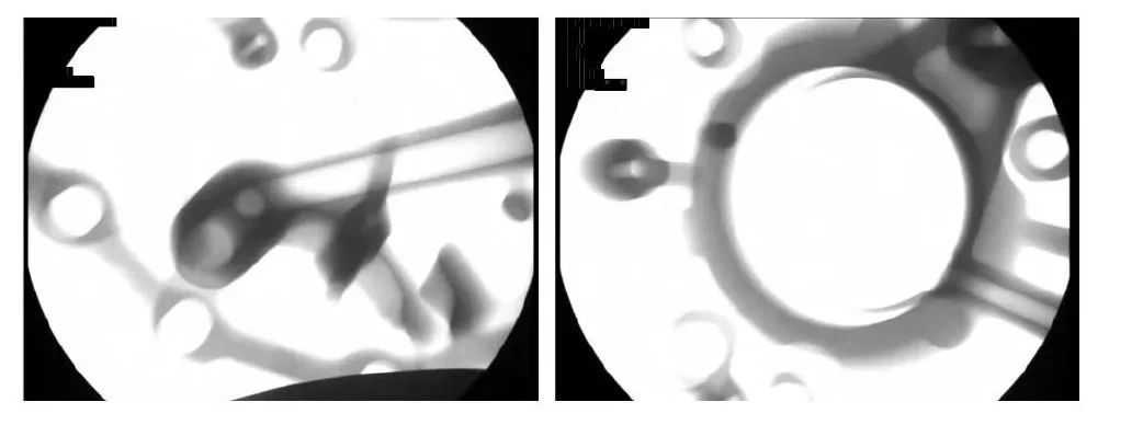 圖5 放油螺栓作進澆方向 壓鑄件質量為3.3kg,渣包與溢流道質量為0.52kg,壓射有效長度為70cm,沖頭半徑為5cm,所以內澆口快壓射起點距離約為50cm。
