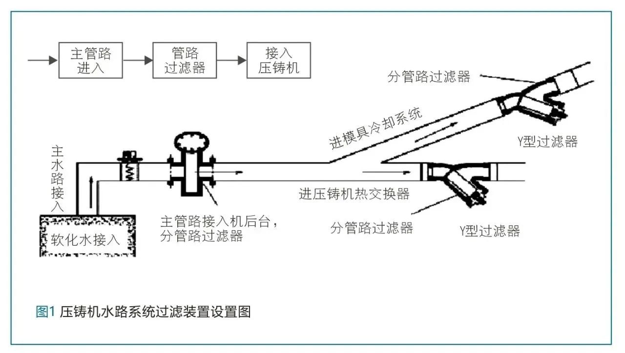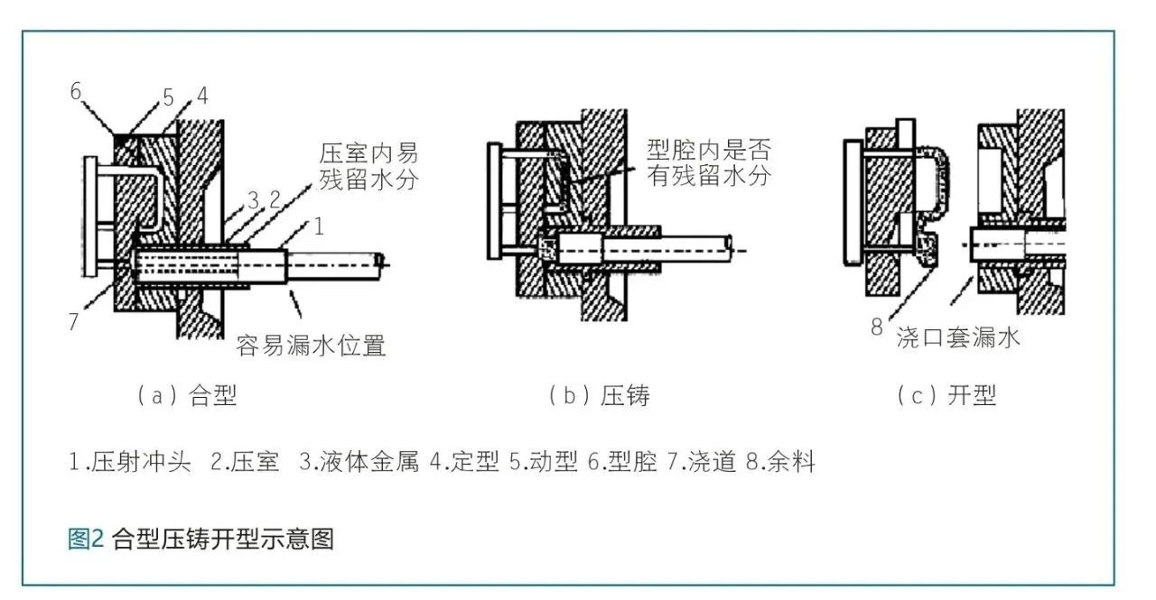 (3)原材料質量 合金是由多種金屬元素組成的混合物,其成分的穩定性直接決定壓鑄件的力學性能,如果合金成分不穩定,即各種金屬元素的含量無法保持在設計要求的范圍內,那么壓鑄件強度和耐用性將無法得到保證。例如,某種合金原材料應含有一定比例的銅和鋅元素,才能滿足特定的強度要求,但如果這兩種元素的含量無法穩定控制,會影響到壓鑄件的強度,甚至可能無法達到設計要求。在原材料生產過程中,難免會存在各種雜質,如氧化物、硫化物和金屬碎屑等,如果這些雜質的含量過高,它們將會在壓鑄過程中造成問題。一方面,高含量的氧化物和硫化物會降低合金的流動性,導致壓鑄件中出現氣孔,會降低壓鑄件的強度和密封性能;另一方面,金屬碎屑等夾雜物會使壓鑄件的組織不均勻,從而降低其整體性能。 應對思路研究 (1)控制生產環境 在壓鑄生產中,外部因素對生產環境的影響是不可忽視的,為了確保生產過程的穩定性和產品質量,需要采取相應的措施來應對這些外部因素。保持恒定的溫度和濕度是非常重要的。在壓鑄生產過程中,熔融金屬的流動性受到溫度的影響,如果溫度波動較大,將會直接影響熔融金屬的流動性能,從而影響產品的成型質量。 因此,在壓鑄車間內應保持一個恒定的溫度,通過安裝空調系統或者加強絕熱措施,避免溫度的劇烈波動。濕度也是需要控制的一個關鍵因素,高濕度會導致模具和壓鑄件表面出現水膜,影響產品的表面質量。為了降低濕度對模具和壓鑄件表面的負面影響,需要加強通風設備。可以安裝排風扇或者通風管道,及時排除車間內的濕氣,保持空氣流通。同時,也可考慮在車間內增設除濕設備,將濕度降至合適的范圍。 (2)優化模具設計和制造 在壓鑄生產過程中,外部因素對于產品質量的影響不可忽視。為了有效應對這些因素,優化模具設計和制造是一種重要的思路。模具設計直接關系到產品質量和生產效率,工作人員要采用先進的模具設計軟件,準確分析模具的應力分布和變形情況,從而優化模具結構,使其更加合理和均衡,避免因模具結構不合理導致的產品缺陷和模具損壞。 同時,要提高對模具材料選擇的重視程度,盡可能選擇優質鋼材,有效提高模具的硬度和耐磨性,延長模具的使用壽命,并且能更好地保持產品的尺寸穩定性,加強產品表面質量。 除了以上兩個方面,還有其他應對思路值得考慮,如結合壓鑄工藝要求,優化模具的冷卻系統,以提高產品的冷卻速度和均勻性,減少產品缺陷。并通過合理設置模具的噴水孔和逃氣孔,有效避免熱疲勞和氣孔問題(見圖2)。