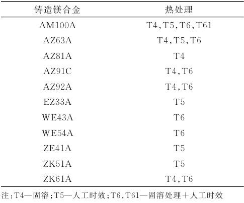 表6 鑄造鎂合金常規熱處理類型 對鎂合金進行固溶處理后再進行人工時效 (T6)可以提高鎂合金的強度,這種工藝主要應用于 Mg-Al-Zn 和 Mg-Er-Zr 合金。但 T6處理后鎂合金的塑性往往會有所降低。表7統計了幾類鑄造鎂合金的典型時效析出相,在第3節中已展開詳細討論,此處不再贅述。 鎂合金鑄件工件尺寸和截面厚度、工件尺寸與爐膛體積容量的比例關系以及鑄件在爐膛中的放置方式等都是影響金屬熱處理工藝的主要因素。鎂合金在熱處理時對溫度控制精度的要求較為嚴格,固溶處理時允許的最大溫度波動范圍為±5 ℃。因此,需要精確控制熱處理爐的爐溫并保證其溫度分 布均勻;同時要求爐子具有良好的密封性,當熱處理溫度高于400 ℃時,必須使用保護氣氛以防止鎂合金表面氧化和燃燒。