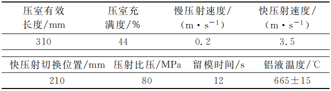 表2 壓鑄試制工藝參數表