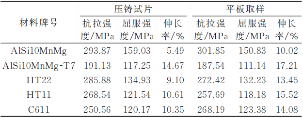 表4 兩種減震塔鑄件本體取樣的力學(xué)性能對(duì)比 結(jié)論 (1)取樣方式 包括位置和方向,對(duì)鑄件本體取樣伸長(zhǎng)率的影響顯著,而對(duì)強(qiáng)度的影響較小。在平板試驗(yàn)中,性能最差的取樣方式測(cè)得的伸長(zhǎng)率為最佳取樣方式的72.61%。在鑄件質(zhì)量較差的區(qū)域,可通過優(yōu)化取樣方向獲得較好的結(jié)果。 (2)制樣方式 包括截面類型和標(biāo)距大小,影響鑄件力學(xué)性能測(cè)試的最終結(jié)果。標(biāo)距較短的試樣具有更高的伸長(zhǎng)率,圓形截面壓鑄試棒表現(xiàn)出較高的伸長(zhǎng)率和較低的強(qiáng)度,而矩形截面壓鑄試棒則具有較低的伸長(zhǎng)率和較高的強(qiáng)度。此外,壓鑄平板的力學(xué)性能表現(xiàn)不均勻,其中性能較好的位置更能代表該材料壓鑄件的理想性能水平。 (3)同一種材料的理想性能與壓鑄件本體性能在伸長(zhǎng)率方面存在明顯差異。壓鑄件的力學(xué)性能標(biāo)準(zhǔn)通常低于該材料的理想性能水平,特別是與試片級(jí)測(cè)試數(shù)據(jù)相比。鑄件伸長(zhǎng)率的標(biāo)準(zhǔn)值設(shè)定為在壓鑄工藝達(dá)到最佳狀態(tài),即鑄件無明顯氣孔、冷料等缺陷時(shí)的最小值,通常為理想性能的50%~70%。 (4)對(duì)于高強(qiáng)韌壓鑄鋁合金材料,在鑄態(tài)下實(shí)現(xiàn)伸長(zhǎng)率平均值達(dá)到10%是可行的,但考慮到實(shí)際鑄件的全區(qū)域性能,將目標(biāo)伸長(zhǎng)率設(shè)定為≥8%附近更為合理。同時(shí),根據(jù)鑄件不同位置的實(shí)際連接需求,可以對(duì)高強(qiáng)韌免熱處理材料的伸長(zhǎng)率要求進(jìn)行區(qū)域性的調(diào)整 本文作者: