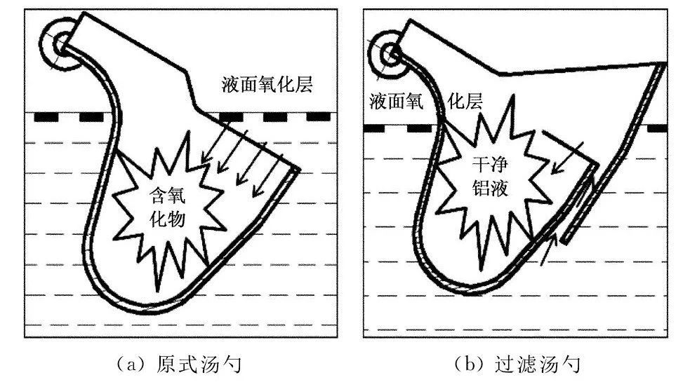 圖7 新舊湯勺 結論 針對壓鑄摩托車曲軸箱體澆口夾渣,從弄清產生夾渣的機理出發,總結現有生產條件的不足及與夾渣的關聯性,從而制定相應的改善措施,保證合適的模具溫度,糾正錯誤的沖頭潤滑油供給方式,實現鋁合金熔煉的標準化,并驗證效果,使曲軸箱澆口夾渣問題得到有效控制。