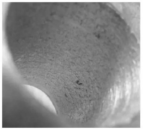 圖5 軸承孔位置氣孔缺陷 采用慢壓射壓鑄工藝的技術(shù)要點(diǎn):1內(nèi)澆口和排氣槽的截面積要比正常的壓鑄模適當(dāng)加大;2調(diào)整好慢壓射速率,使其能在保證內(nèi)部及外部品質(zhì)的前提下以盡量低的速度緩慢壓射;3找準(zhǔn)增壓位置轉(zhuǎn)換點(diǎn),使金屬液在充滿型腔后立刻增壓,這樣才能保證型腔內(nèi)氣體最大限度的排出并使鑄件在壓力下補(bǔ)縮;4適當(dāng)提高合金澆注溫度及模具溫度。