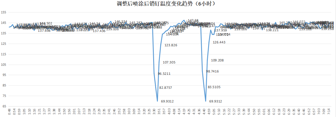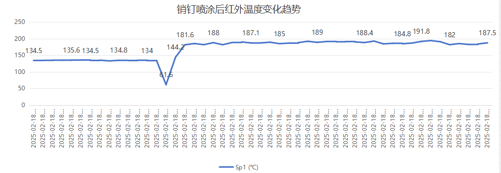 圖9 4結論 本研究通過引入模溫控制系統,成功解決了壓鑄生產中因冷卻不均導致的零部件開裂問題。實驗結果表明,噴涂后的模具溫度應迅速降至150℃左右,但在未使用熱成像技術之前,銷釘部位的溫度仍維持在207℃,遠高于標準要求,這直接導致了生產過程中頻繁出現的零部件開裂現象。通過熱成像技術,及時發現了冷卻系統在該部位存在的問題,進而對冷卻系統進行了針對性調整。調整后的模具冷卻效果顯著改善,銷釘部位的溫度成功降至156℃,消除了開裂問題。 實驗數據進一步驗證了模溫控制系統在提升壓鑄質量方面的有效性,特別是在確保模具溫度均勻降低和優化冷卻過程方面的優勢。通過精準的溫度監控與及時的調整,本研究不僅提高了生產效率,還大幅降低了由于溫度控制不當導致的質量缺陷。實驗結果的關鍵數據,如銷釘部位的溫度由207℃降至156℃,為進一步優化模溫控制系統提供了可靠依據,證明了熱成像技術在模具溫度監測和控制中的重要作用,并且可以根據生產每模溫度變化提前預判停機期間若不增加人為干預情況下需要7模左右才能恢復正常生產狀態(如圖10所示),以此依據可以在停機后適當增加關鍵部位溫度減少熱模時間減少產能損耗。這一改進方案有效提升了壓鑄零部件的質量,為壓鑄生產過程中的溫控技術應用提供了寶貴的經驗。