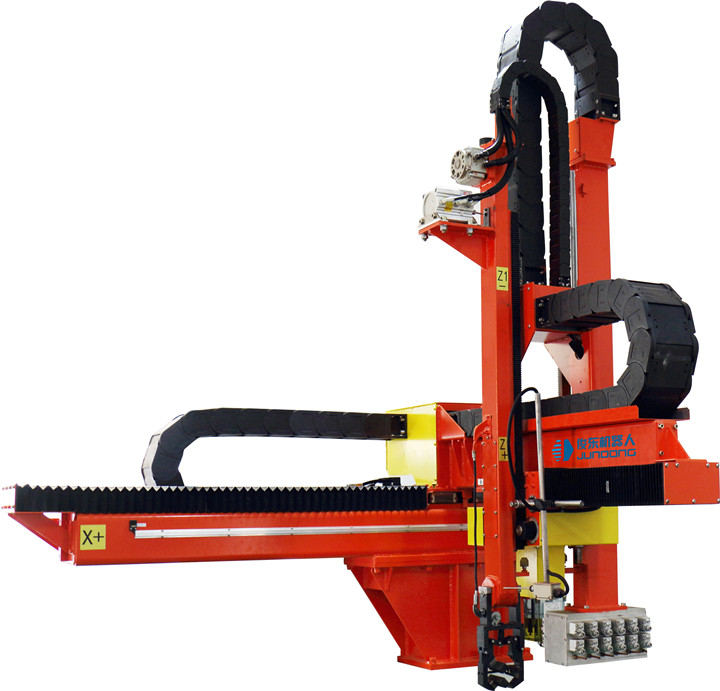 升降桿在“斥騎”陸軍野戰指揮偵察車的應用:采用方形桅桿,方向方位空回小,保持精度高,有利于保持瞄準線方位向精度。可以升高到8米,同時依然保持著良好的機械配合,有利于有效載荷的高精度觀測。----摘自《兵器》2015年1月刊 “為積極響應國家‘軍民技術融合’的號召,前幾年我們一直在努力尋找將所掌握的自動化技術轉化到一個民用領域,最后我們選擇了壓鑄行業作為切入點,” 顧華俊先生表示:“對于我們來說,這是一個陌生的行業,但是我們非常看好這個行業,這源自于汽車輕量化和環保對輕合金鑄件的需求,以及壓鑄本身作為高產、高性價比工藝的優點。” 顧華俊先生補充說:“升降桿是一類技術含量非常高、精度及穩定要求很嚴苛的設備,它與壓鑄自動化設備在技術上也是共通的,我們擁有一支以國家一流科研院所和高等院校的專家為核心的研發團隊,所以研制壓鑄自動化周邊設備,在技術上對于我們來說不存在問題。” 據介紹,俊東機電目前在南京等地建有三大生產基地,并在南京總部設有移動通信用升降桿研究中心。憑借雄厚的研發能力,俊東機電在國內開創了多項新技術應用先例,已取得了多項升降桿(塔)發明、實用新型和外觀設計專利。 以技術為支撐,推出高科技、差異化新品 今年年初,俊東機電成功推出伺服給湯機械手、四軸噴霧取件一體線性機器人產品。尤其是四軸線性機器人,其融入基于溫度場的噴涂技術著實讓人“眼前一亮”。顧華俊先生表示:“該線性機器人最大的亮點是智慧噴涂的特性,噴霧時,溫度場智能檢測,根據模具表面溫度場的分布及溫度場和噴涂時間的對應關系曲線,自適應調整噴涂策略,可大大提高鑄件品質,實現全自動噴涂。”