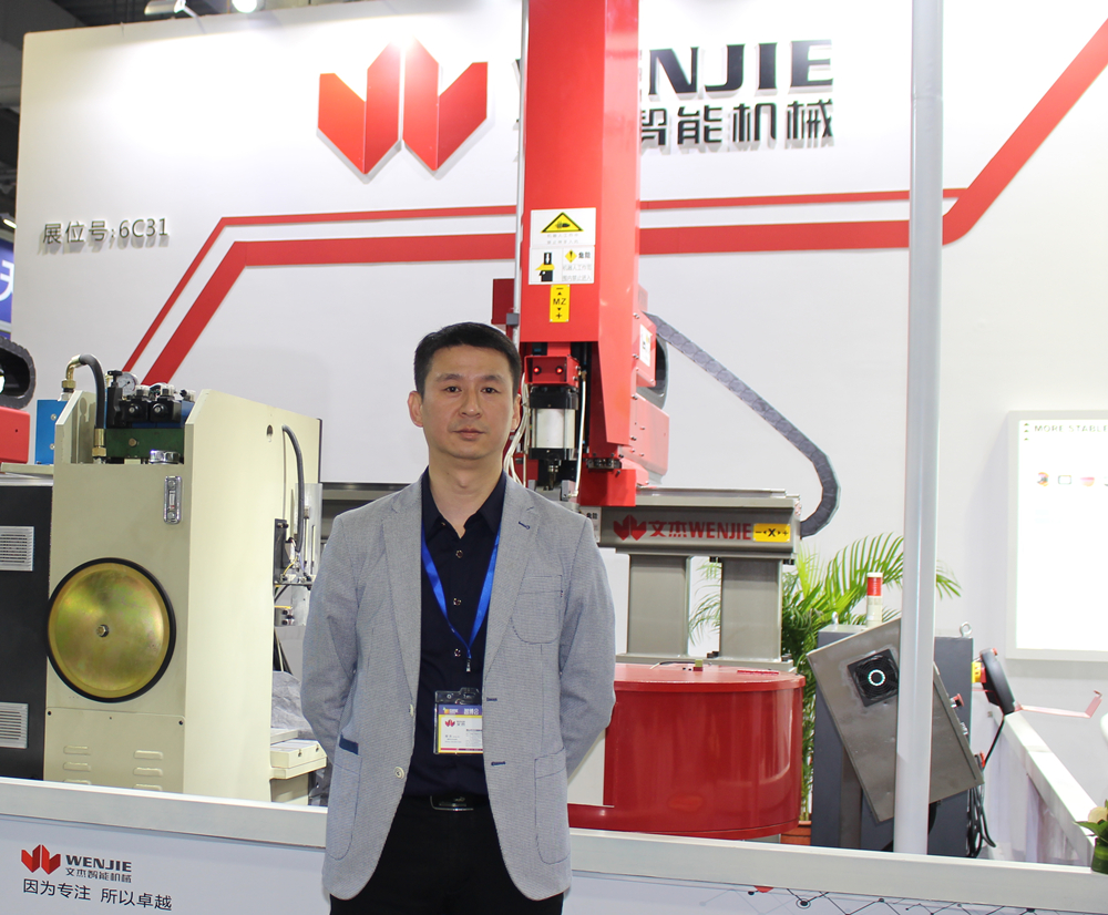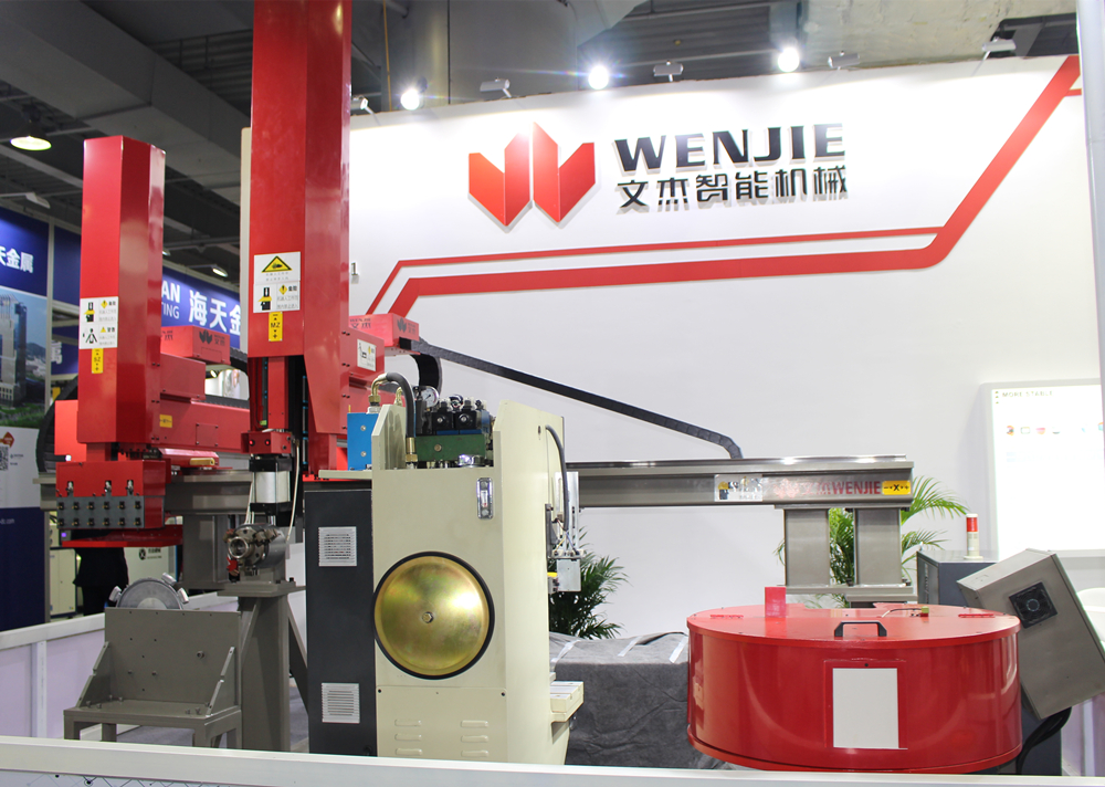 文杰智能董事長楊杰先生 在本屆展會(huì)上,行業(yè)領(lǐng)先的壓鑄線性機(jī)器人制造商——佛山市文杰智能機(jī)械有限公司展示一款WJC-900雙臂線性機(jī)器人。WJC-900適用于中小型壓鑄機(jī),可應(yīng)用于壓鑄過程的噴霧、取件、冷卻、碼垛、鑲嵌、沖邊等多種工序。WJC系列是文杰智能正式推出市場的第二代線性機(jī)器人,是公司多年的潛心力作和技術(shù)結(jié)晶,具有高效能識(shí)別、伺服驅(qū)動(dòng)兩大特點(diǎn),工作效率更高,負(fù)載更大,移動(dòng)速度更快、精度更高。 據(jù)介紹,WJC擁有兩個(gè)移動(dòng)臂,最大負(fù)載可達(dá)75公斤,并具快速而且精準(zhǔn)優(yōu)點(diǎn),標(biāo)準(zhǔn)規(guī)格的機(jī)器人移動(dòng)速度最快可達(dá)每秒2.5米,中小型線性機(jī)器人位置公差為正負(fù)0.05毫米,大型線性機(jī)器人正負(fù)0.15毫米。