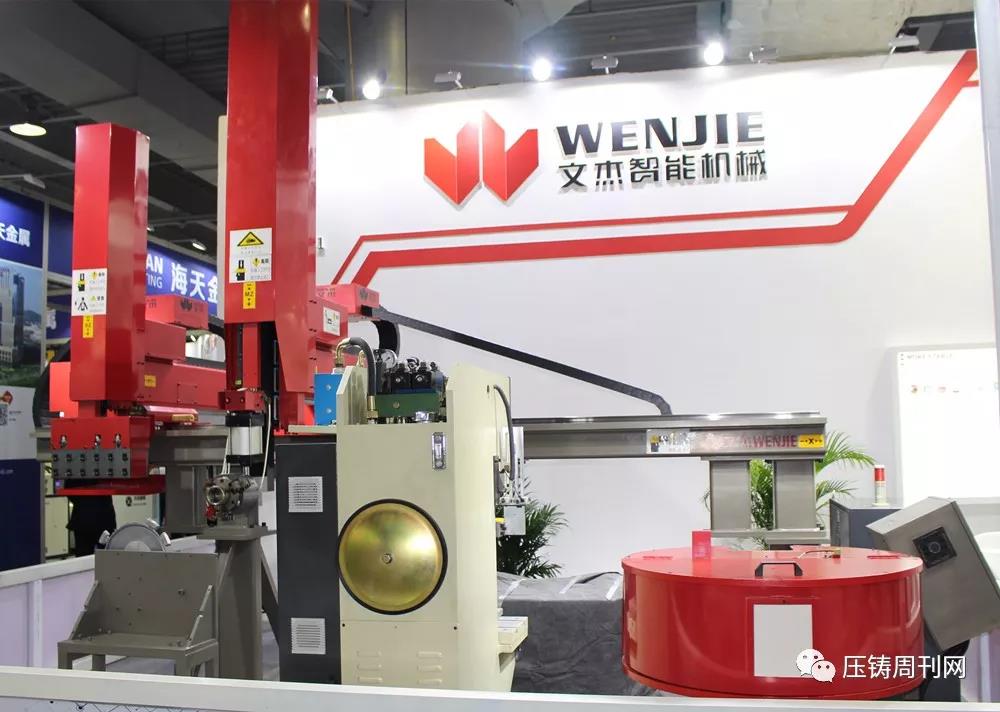 WJC系列雙臂壓鑄線性機器人 據介紹,WJC系列線性機器人使用特殊設計的防堵功能噴頭;噴涂時有傳統機的效率,也具備機器人多角度、多點獨立操作的靈活移位性能;特殊設計的取件抓手,標配機型可適用于8個不同尺寸產品的抓取。WJC使用獨立電腦控制器,全中文操作界面,具有QC功能,設定N模取樣、隨機取樣檢驗、手動取樣,首件放棄功能,成型機不良品訊號聯機。該大型線性機器人采用成熟的設計方案,具有穩定、安全、精確、環保、智能和多功能等特點。 值得一提的是,WJC-4000擁有文杰特有設計的取件臂或噴涂臂與壓鑄機單獨聯動控制功能,可以選擇取件臂或噴霧臂分別單獨與壓鑄機連動,有效滿足實際使用工況;獨有的噴霧頭清潔功能,停機時將機器人管路內的殘余脫模劑吹出,避免噴咀堵塞或結臘。 WJC-4000的成功推出,不僅是文杰智能在技術上的提升,還為WJC壓鑄線性機器人家族增添了超大機型的新成員,豐富了WJC系列的產品線,提升文杰的市場競爭力,鞏固其在壓鑄線性機器人領域的地位。 |