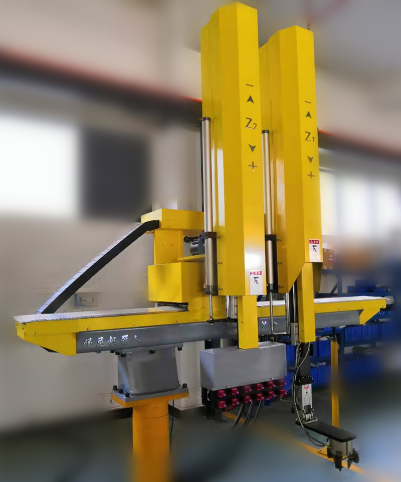碩尼SN2大型雙臂線性機器人 目前,碩尼智能公司已成功開三個系列多款型號的壓鑄線性機器人產(chǎn)品,包括:SN1取件噴霧一體機器人系列,多款應(yīng)用于400-900T中型壓鑄生產(chǎn)單元;SN2雙臂取件噴霧一體機器人系列,應(yīng)用于1000-3000T大型壓鑄單元;公司調(diào)研全國市場需求,推出一款精益型一體機器人,專為中小型壓鑄機開發(fā)研制,用于180-300T,該款相比于傳統(tǒng)三手,不管在價格、效率、節(jié)能、環(huán)保、安全等方面都有很大的優(yōu)勢。公司目前月產(chǎn)能可達100多套 。 相比于傳統(tǒng)的噴霧、取件機械手,或者關(guān)節(jié)機器人噴霧取件,壓鑄線性機器人擁有更多優(yōu)勢,單機兼具噴霧、取件雙功能,效率更高,協(xié)調(diào)性更佳,并且可以集成機器人與給湯機同一電箱。安裝不占用空間,噴霧、取件無需打開安全門,更加安全;不僅可進行噴霧、取件,還可執(zhí)行鑲嵌、切邊、碼垛等工序。另外。與關(guān)節(jié)機器人投資成本相比,性價比高。