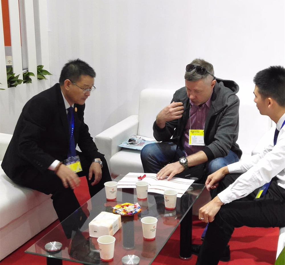 固德威總經(jīng)理李昌滿先生接待外賓 在上周閉幕的2018國(guó)際鑄業(yè)展上,廣東固德威展出的高端機(jī)型GDC500SM冷室壓鑄機(jī),此乃其在原GW系列機(jī)型基礎(chǔ)上推出的第二代產(chǎn)品,融入多項(xiàng)專(zhuān)利技術(shù),具有“可靠、穩(wěn)定、耐用”卓越性能,主要針對(duì)國(guó)內(nèi)外汽車(chē)、摩托車(chē)輕量化以及高端市場(chǎng)需求而研發(fā)。