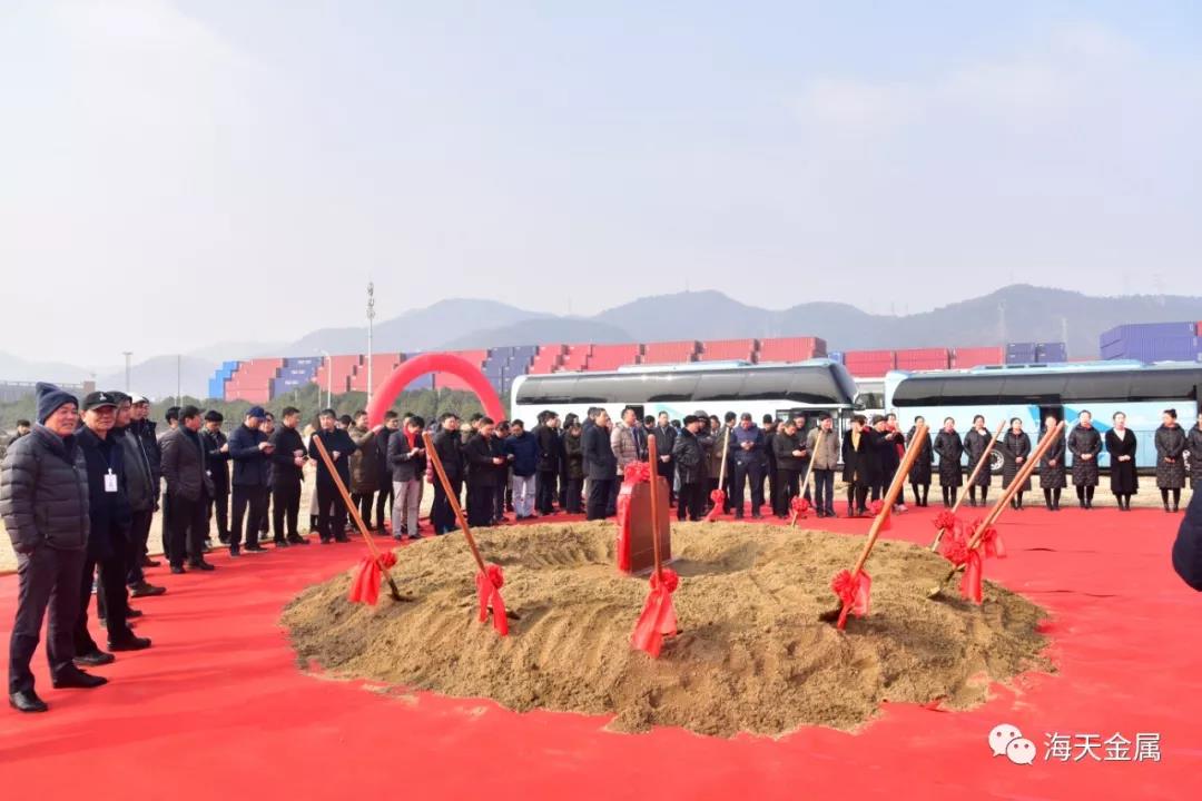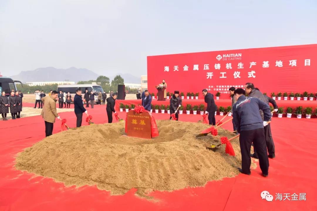 ![]() 從左至右分別為:海天金屬總經理樂曉東先生、寧波保稅區管委會副主任、黨工委副書記陸志孟先生、寧波保稅區管委會副主任余斌先生、海天國際總裁張劍鳴先生、海天集團董事長張靜章先生、寧波保稅區管委會主任、黨工委書記嚴榮杰先生、寧波保稅區管委會副主任葉萬檔先生、海天驅動總經理劉劍波先生、海天精工總經理王煥衛先生、海天國際執行董事張斌先生 2019年1月17日上午,海天集團全資子公司寧波海天金屬成型設備有限公司壓鑄機生產基地項目開工儀式在保稅區(寧波出口加工區)隆重舉行。寧波保稅區管委會主任、黨工委書記嚴榮杰、海天集團董事長張靜章、海天國際總裁張劍鳴、海天國際執行董事張斌先生、海天金屬總經理樂曉東等領導出席儀式并為項目奠基。